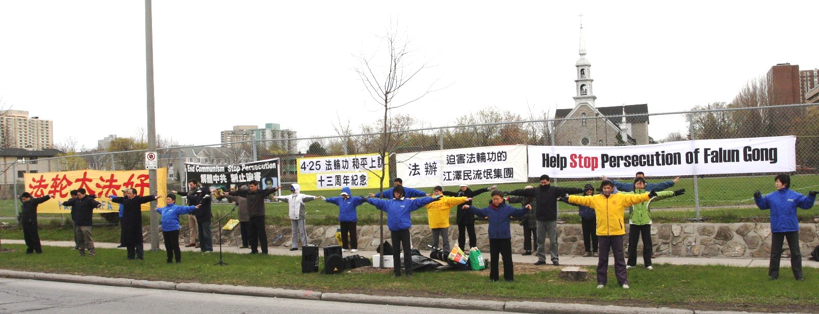 ![]() 纪念“四二五”十三周年,渥太华法轮功学员在中国驻加拿大使馆前请愿,并呼吁停止迫害。 |