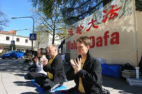 ![]() 纪念“四二五”,德国慕尼黑在中领馆前静坐。 |