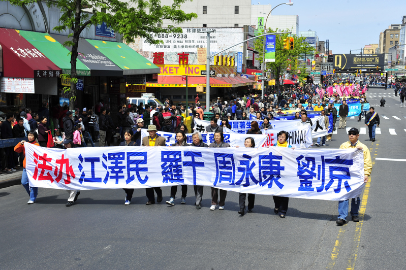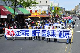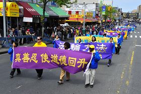二零零八年五月十七日,中共的流氓头子周永康之流为了转嫁中国民众对“五一二”四川大地震中豆腐渣工程的愤怒,指使中领馆、海外特务等,操纵不明真相的学生民众在法拉盛抹黑法轮功,用“天安门自焚伪案”雷同的手法,妄图用诬蔑造谣的手法再次欺骗民众。法轮功学员坚守“真善忍”信念,法拉盛每天的真相点由一个增加到五个,并和警方合作,开始了一年一度的法轮功盛大游行集会,向各界展示法轮功真相。