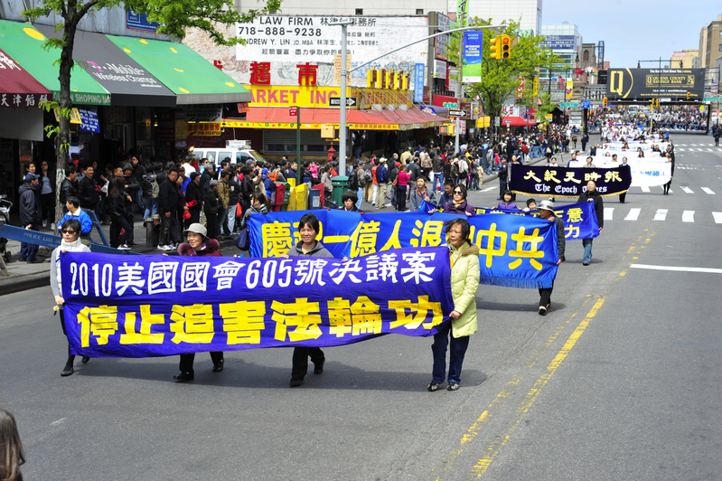 四年过去了,五个法轮功真相点每天都在不懈地讲述着真相,呼唤着世人的良知。已经成为法拉盛街头一道最明亮的风景线。而一年一度的大游行更是为那里的人们展示了上苍的无限慈悲。