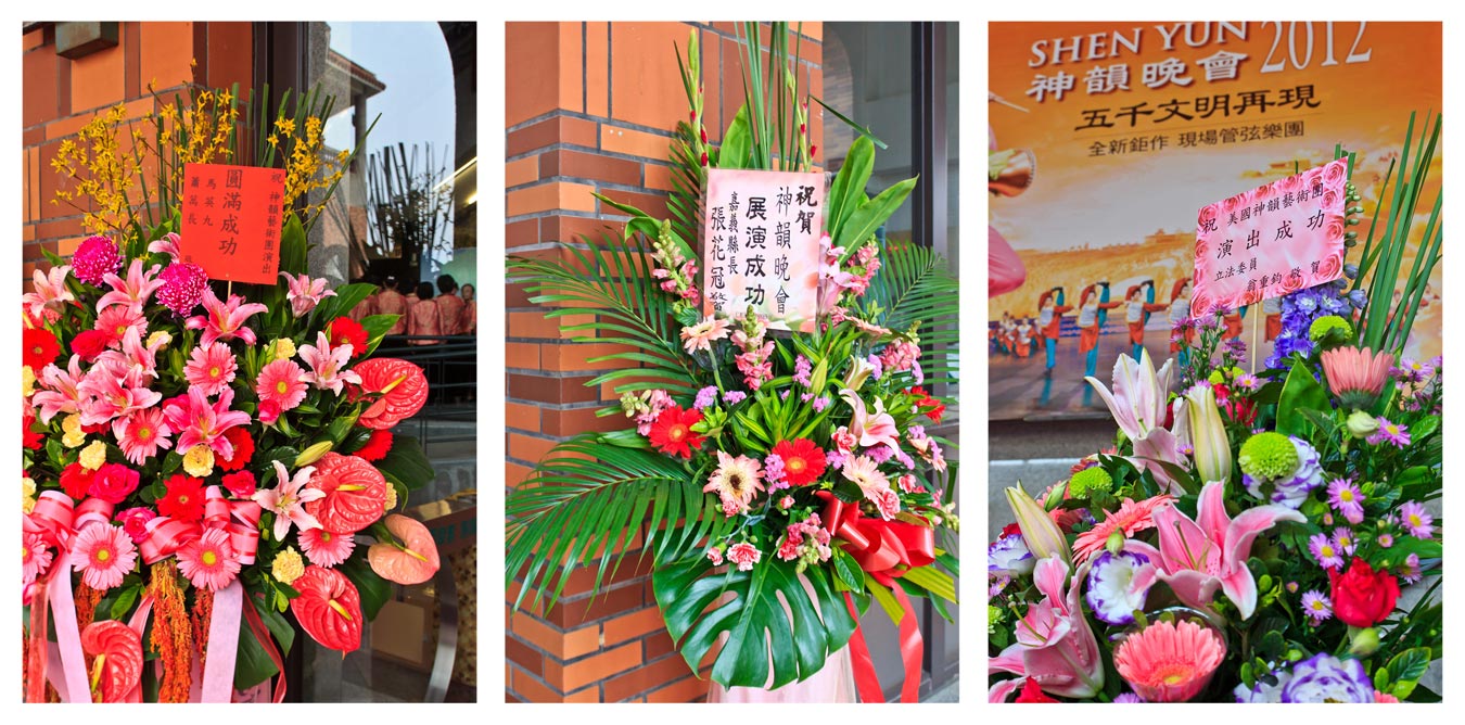 ![]() 总统马英九、副总统萧万长;嘉义县长张花冠;立委翁重钧等致赠花篮,祝贺美国神韵纽约艺术团演出成功。 |