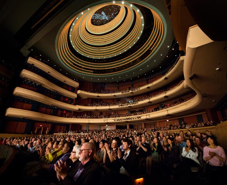 ![]() 美国俄亥俄州代顿市疏斯特艺术中心里,观众们凝神欣赏神韵国际艺术团的精彩演出 |