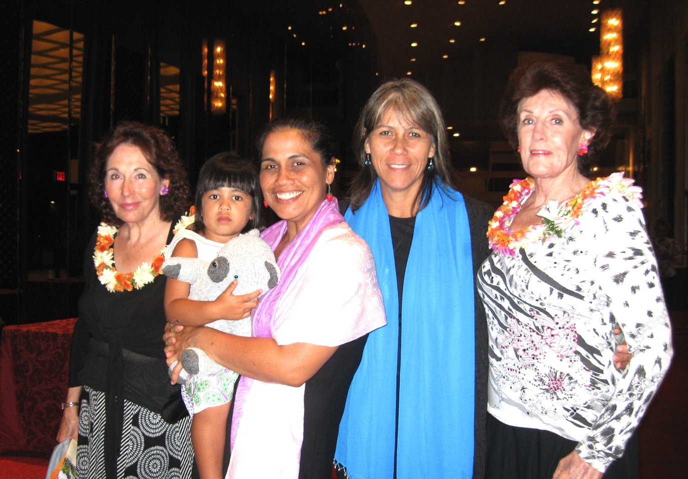 治疗师Kauhane Lee(右二)与朋友Noelani Perreira(左二)和她四岁大的女儿都表示,感受到神韵晚会中强大的慈悲的能量。右一是Barbara Odson,她说,神韵之美超凡脱俗。