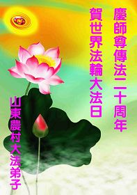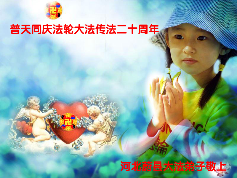 我是从4岁得法的大法小弟子,十多年的风风雨雨,我在大法的修炼中长大了、在师父的慈悲呵护下渐渐的成熟了,我已经从一个不懂世事的孩子成为了一个成熟的具有大法弟子特质的青年。十多年来,我跟山西省大同修们一样,学法、炼功、发正念、做资料、发资料,讲真相、劝三退,走在助师正法的路上,我用稚嫩的肩膀揹送了7年多的资料,直到我离开家上了大学。在新的环境里,我用大法赋予的智慧,开创了自己修炼及讲真相的环境,让更多的人得救。像我们这样从小得法的小弟子有很多,虽然迫害是残酷的,虽然我们的亲人们遭受了不同成度的迫害,我们幼小的心灵也由于这场迫害被深深伤害过,但是,这一切都没有动摇过我们对大法的坚定,因为真善忍的种子已深深的植根于我们的内心,我们是宇宙中最幸运最幸福的生命,佛恩浩荡,师恩浩荡,我们在大法中成长,在大法中成熟。在大法洪传世间二十年之际,特向慈悲伟大的师父问好,感恩师父的慈悲救度!请师父相信,我们一定会严格要求自己,以后的路我们会更纯净更稳的走下去,我们要跟师父回家!
