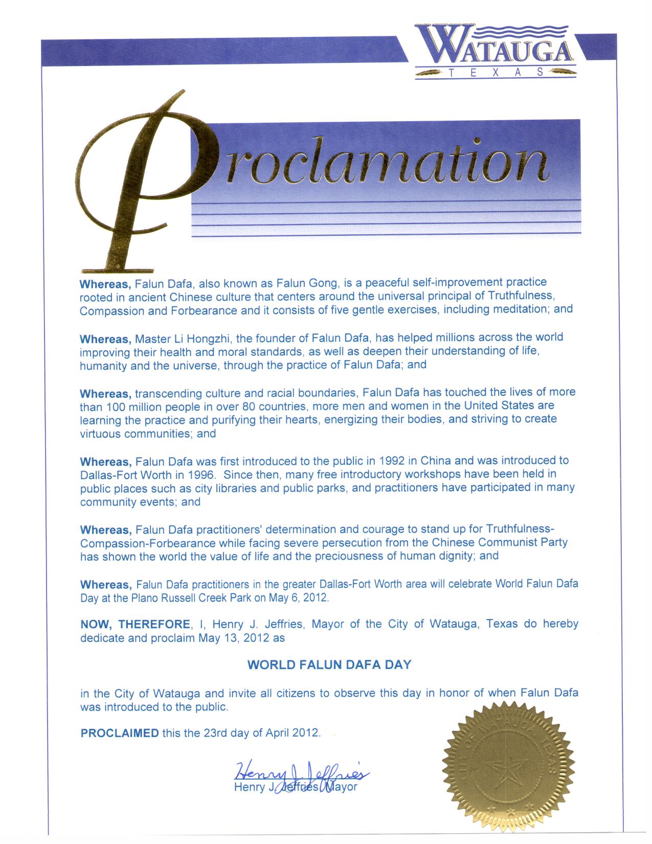 他说,法轮功中国大陆以外,得到了广泛的认可,包括各种奖励和褒奖。加拿大各地政府官员,包括渥太华多任市长在过去十年中宣布五月十三日为法轮大法日。