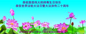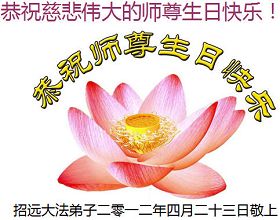 【明慧网二零一二年五月十一日】今年的五月标志着法轮大法洪传于世二十周年。大法修炼者通过对“真、善、忍”大法法理的实践而获得身心健康。为感恩师父的慈悲,十三年以来,每年的5月13日,世界各地的法轮大法弟子,都向明慧网寄来贺卡贺词,恭贺师尊华诞,并庆祝“世界法轮大法日”。这里是明慧编辑部已整理出来的教育系统大法弟子的来信汇编: