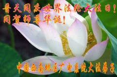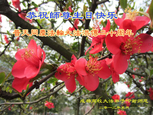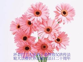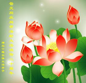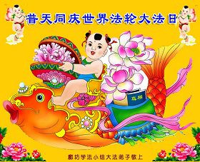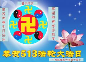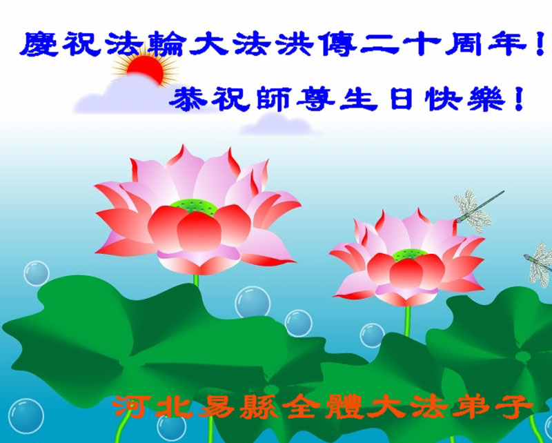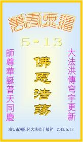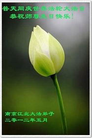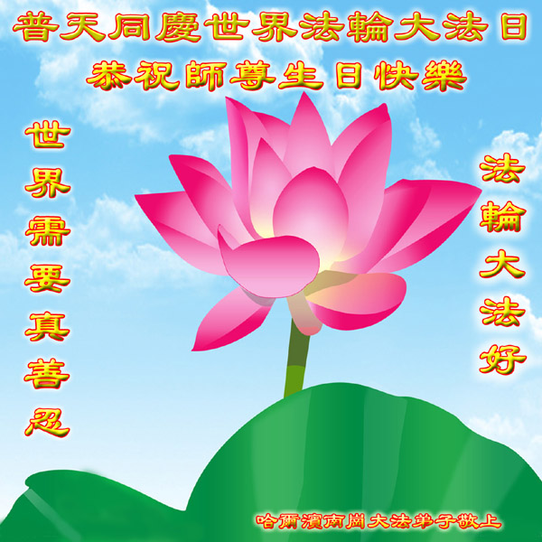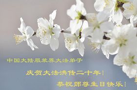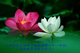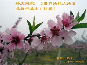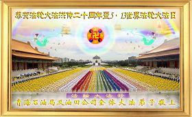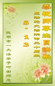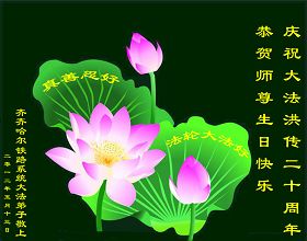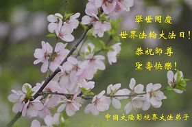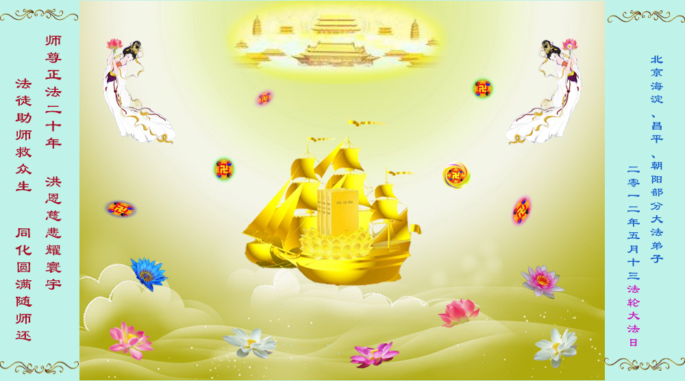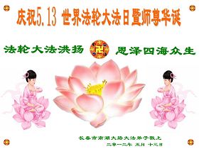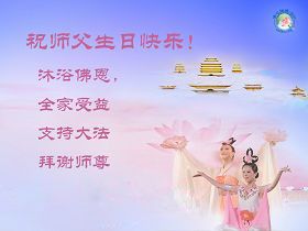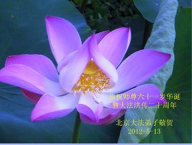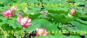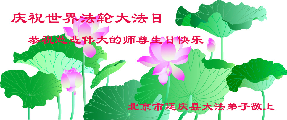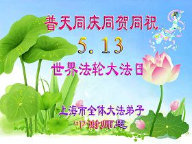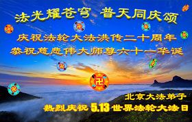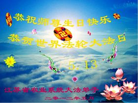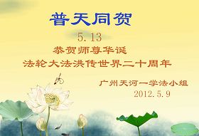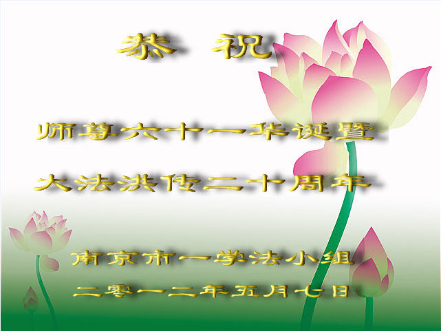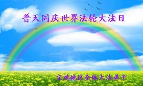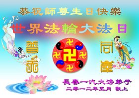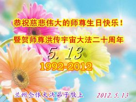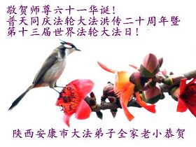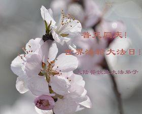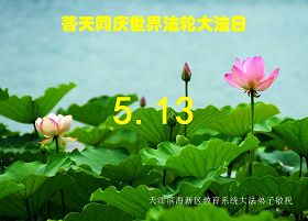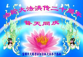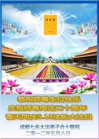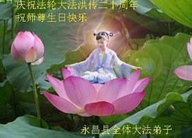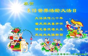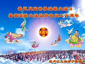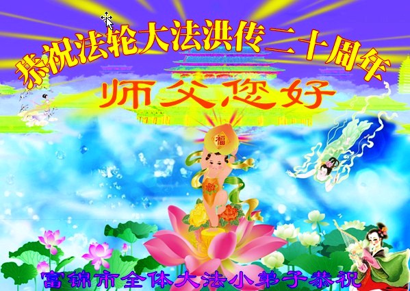 在这普天同庆法轮大法二十周年及世界法轮大法日的美好日子里,我们夫妻大法弟子一定要学好法,做好三件事,决不辜负师尊的慈悲苦度。