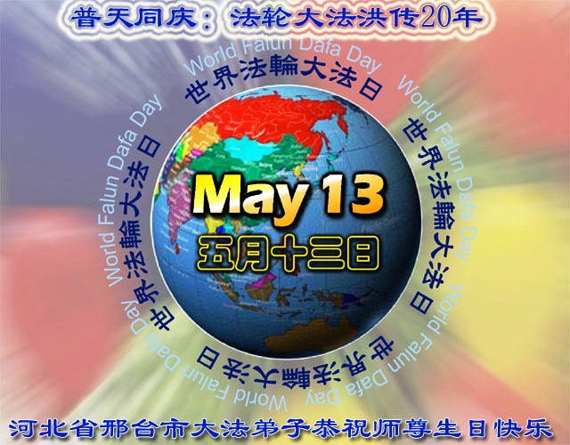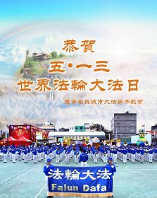 二零零零年五月,在世界各地法轮大法学员的倡议下,各国法轮大法学会共同决定将每年的五月十三日定为“世界法轮大法日”。世界各地的法轮功学员在大法日期间都会举办各种各样丰富多彩的庆祝活动,表达对师尊的崇高敬意和问候。