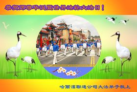 下午一点,天国乐团澎湃有力的鼓声《法轮大法好》、《法轮圣王》、《师父,谢谢您》等乐曲,奏响了欢歌载舞的庆祝活动。多才多艺的法轮功学员们个个争先恐后,纷纷拿出自己的专长,都希望能在这一珍贵的日子里献上一份心意,表达自己的无限感恩,那是生命走向新生,了解真理后的无限激动与喜悦。