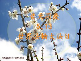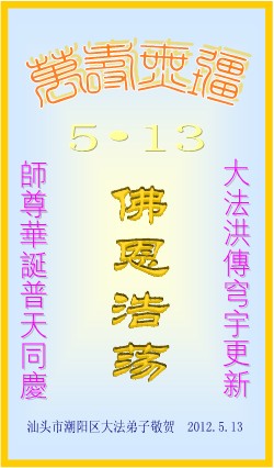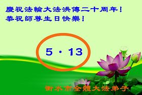 一年一度的五月十三日,一个特殊而不平凡的日子,我们更加想念师尊。我们要更用心学好法,做好三件事,使更多的人得救,做个让师尊放心的弟子,努力精進做好各自的项目,不折不扣的做大法弟子应该做好的三件事,修正、洗净、圆满随师返家院。