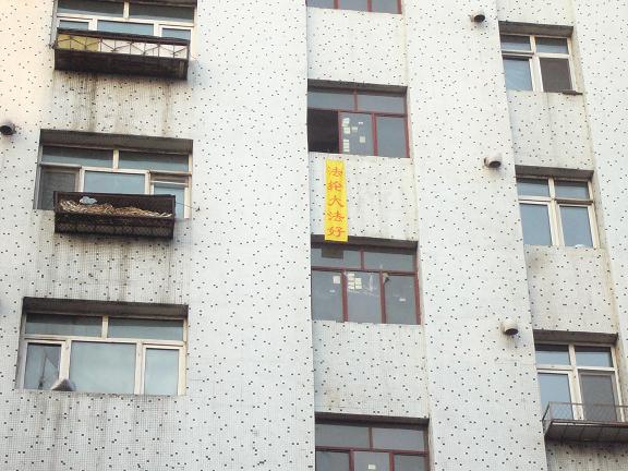黑龙江省鸡西市大法弟子悬挂条幅庆大法日