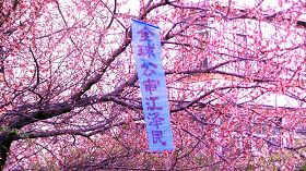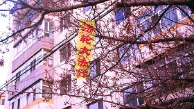 中央党校附近,悬挂着“庆祝5.13世界法轮大法日”横幅;