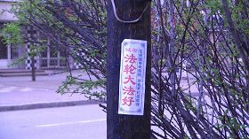 大陆东北某市“5.13”出现大量法轮功真相条幅粘贴