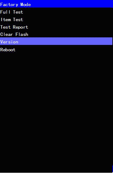 进入测试模式画面后,按“下音量”键,使“Version”高亮显示。