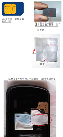 对于有些老年同修,还有一个备用方法,就是在sim卡背面粘上透明胶带,往外取卡时,一拉胶带SIM卡就出来了,很方便,如图示: