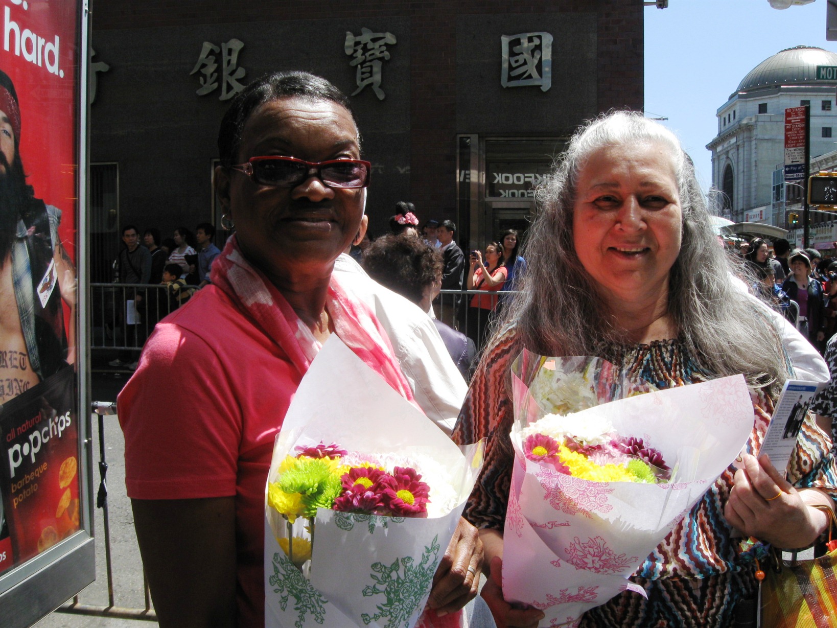 ![]() 纽约居民Dora说:“在纽约三十多年了,第一次看到这么美好展现的游行,真的很高兴,给我和朋友在唐人街合个影留念。” |