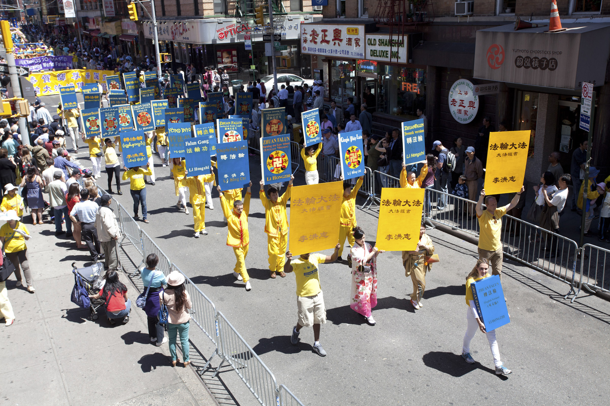 正在全神贯注观看法轮功游行的中年华人黄先生,望着一波一波的横幅从眼前过去,法轮功游行的气势深深吸引他。他说:“法轮功讲‘真善忍’,法轮功学员是一群好人,却受到迫害,诬陷,被认为有什么‘自焚’。这一点影响着很多中国人对法轮功有负面看法。”黄先生在纽约是以导游为职业的,他介绍说“我经常接待从中国大陆来的游客,这些游客代表着中国大陆很多人的看法,他们对中共所说的深信不疑,还很难去了解真相是什么,‘认为中共就是中国’。我认为:一旦中共解体,被迷惑的中国人将会后悔。中共的解体很快、没有多远了。”