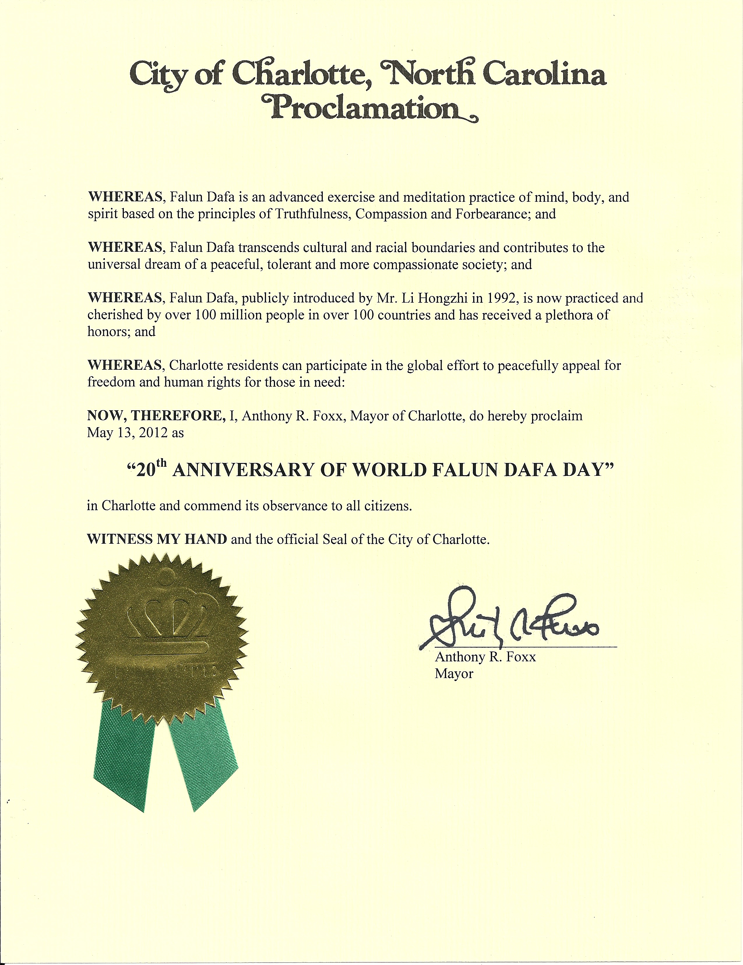 因此,我,安东尼•福克斯(Anthony R. Foxx),夏洛特市市长,特此宣布二零一二年五月十三日为