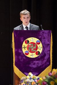 来自纽约的西人学员戴蒙(Damon Noto)和大家分享了他在纽约神韵演出中看到的殊胜景象:舞者和乐团发放出强大的能量。剧院中有无数的佛,菩萨,道,神与师父的法身。鼓励大家要珍惜机缘,互相帮助,真心的助师父救度更多的众生。