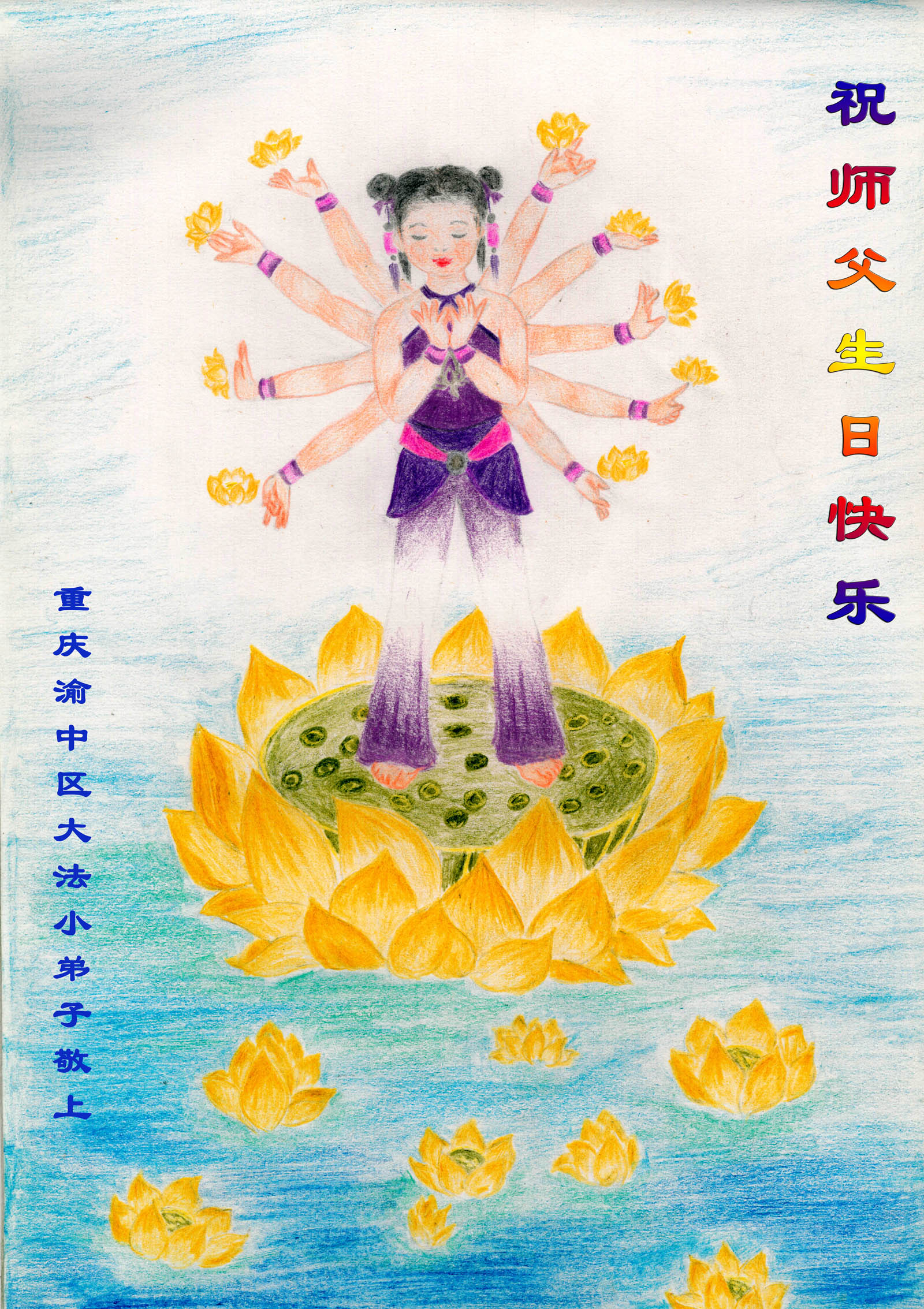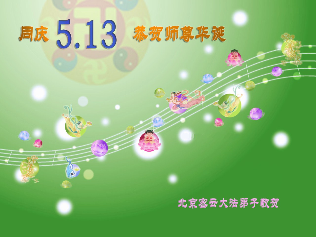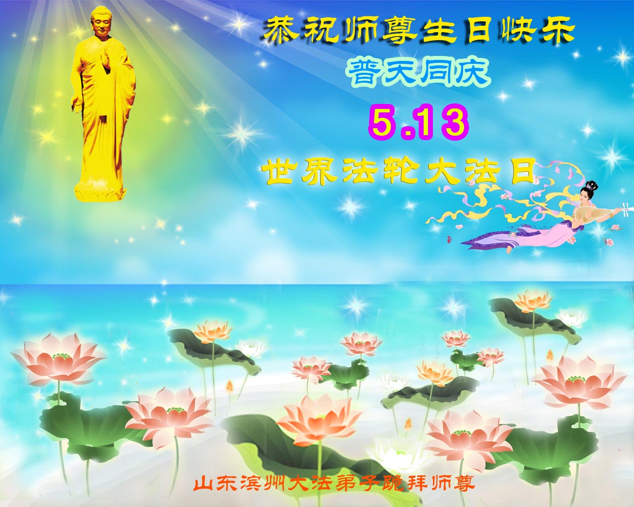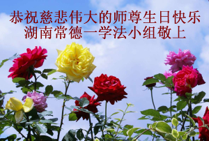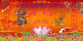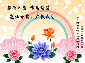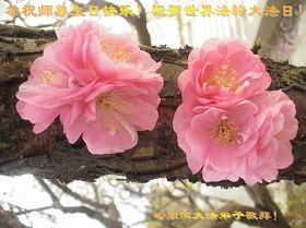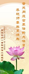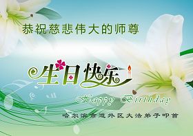法会开始,主持人代表全体参加法会的大法弟子和全世界大法弟子及芸芸众生恭祝慈悲伟大的师尊生日快乐。
