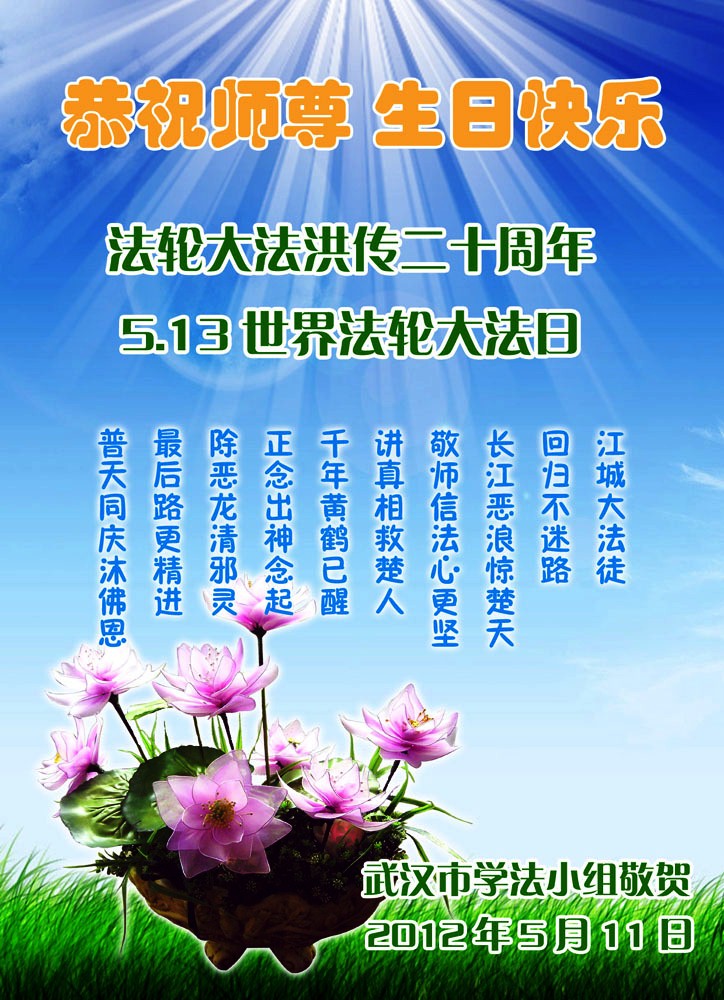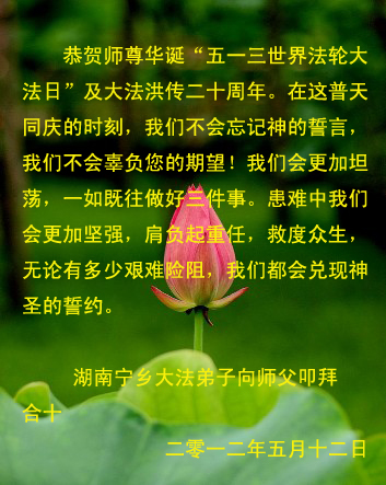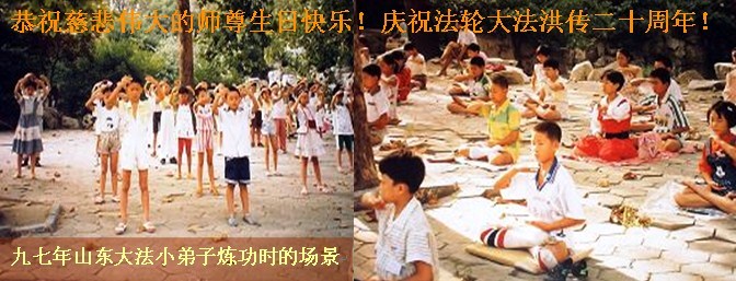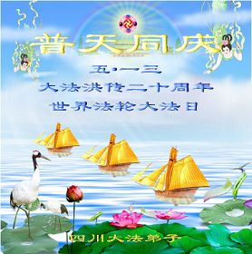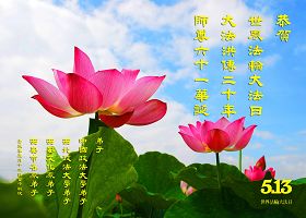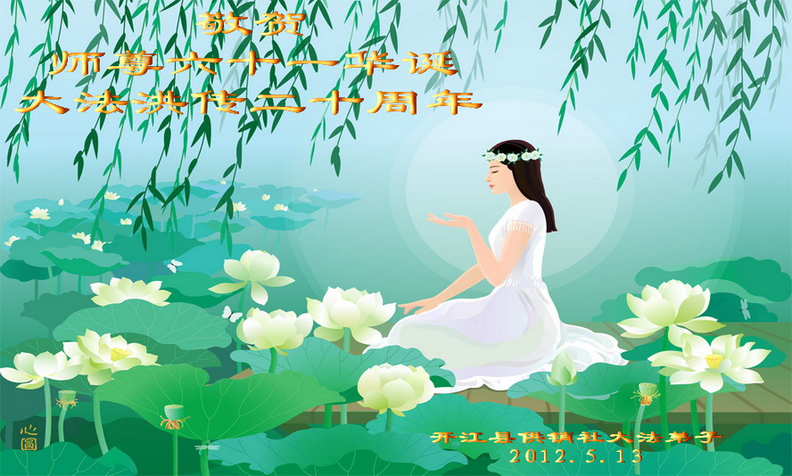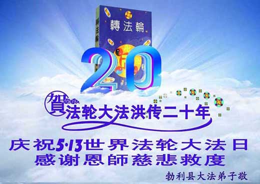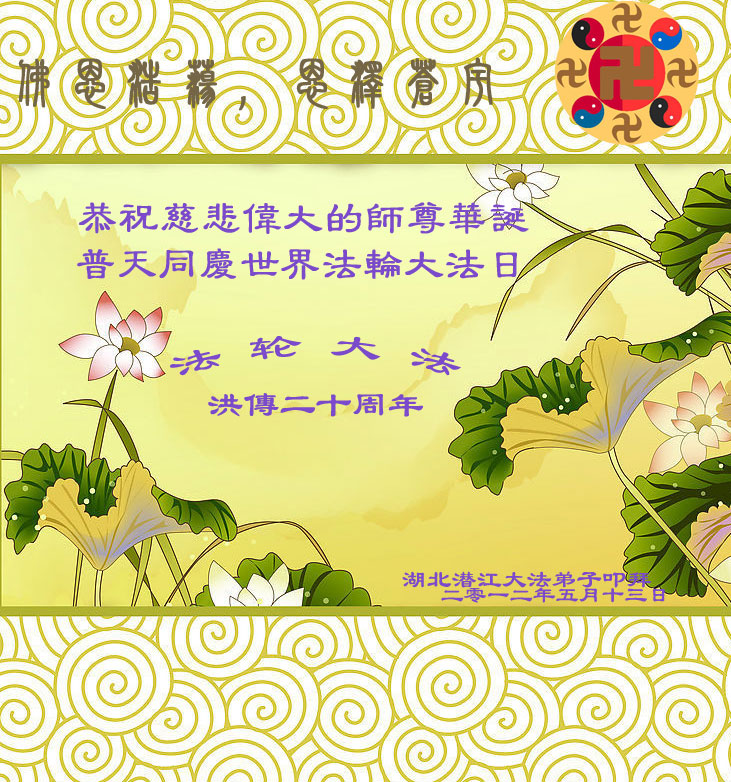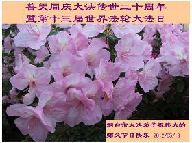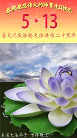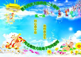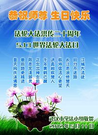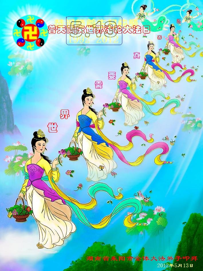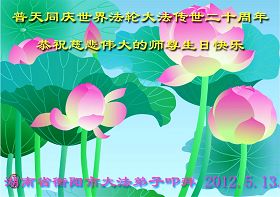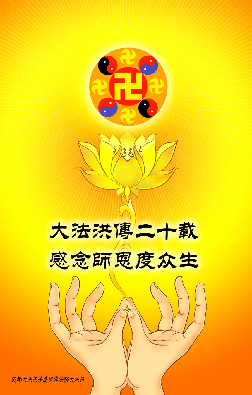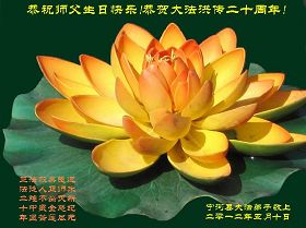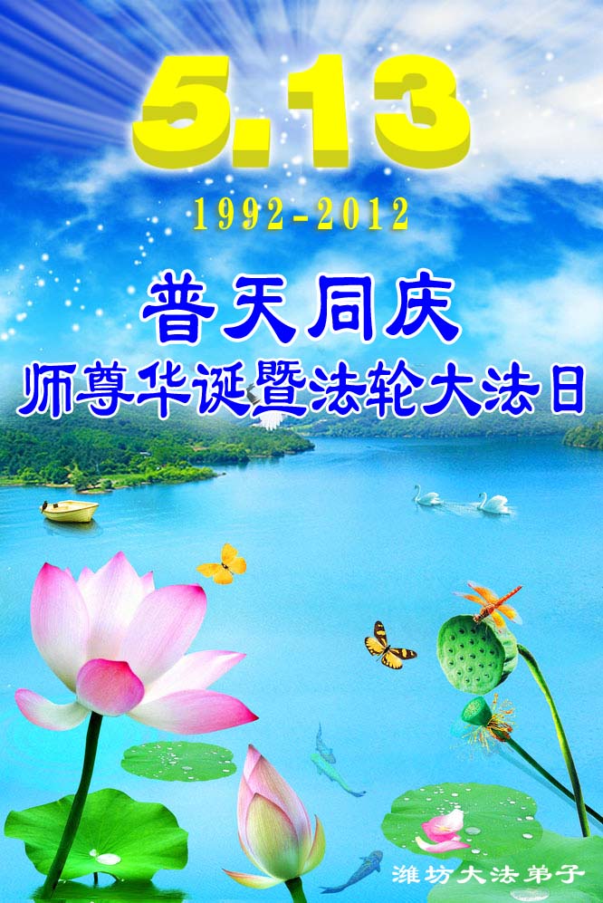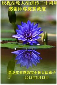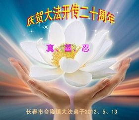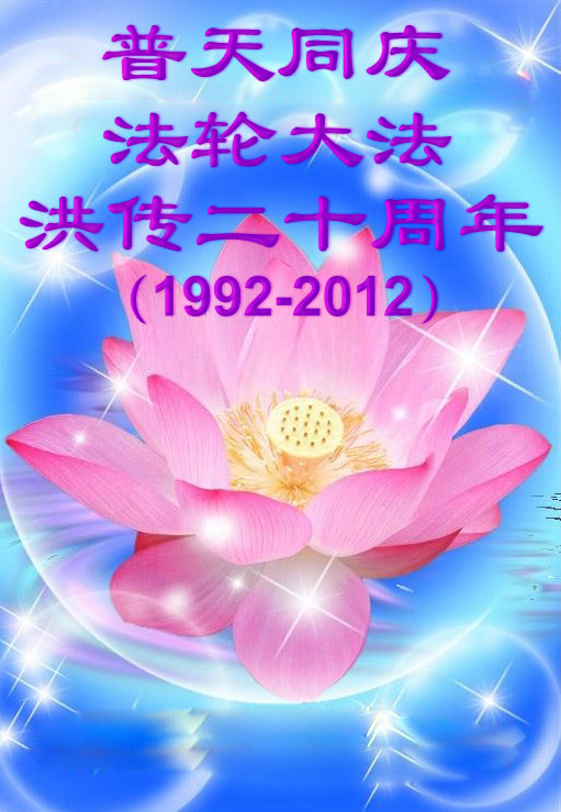 【明慧网二零一二年五月十四日】二十年前的五月十三日是历史见证神奇的开始。五千年的中华神传文化铺垫后,冥冥之中人们等待的、期盼和寻觅的人成神的通天之路开始在世人面前展开——一九九二年李洪志先生第一次公开将法轮修炼大法传给了世人。大法洪传世间二十载始终伴随着神迹,只有经历了净化、重生和被救度的生命才能真正感悟到法轮大法的殊胜和神圣。