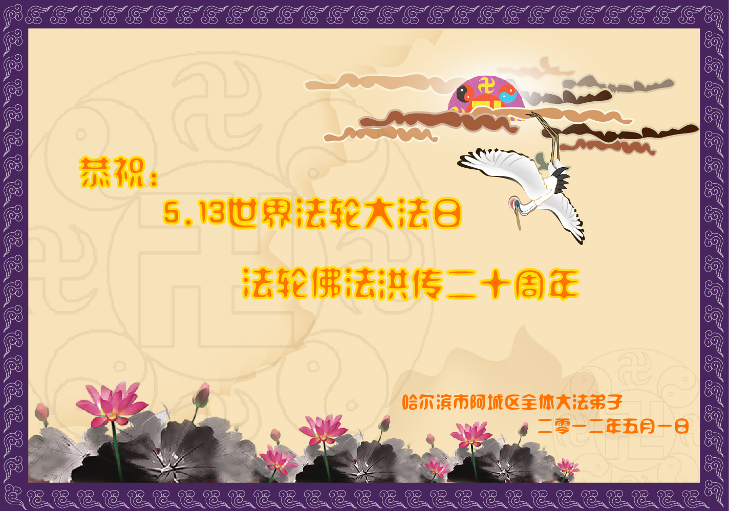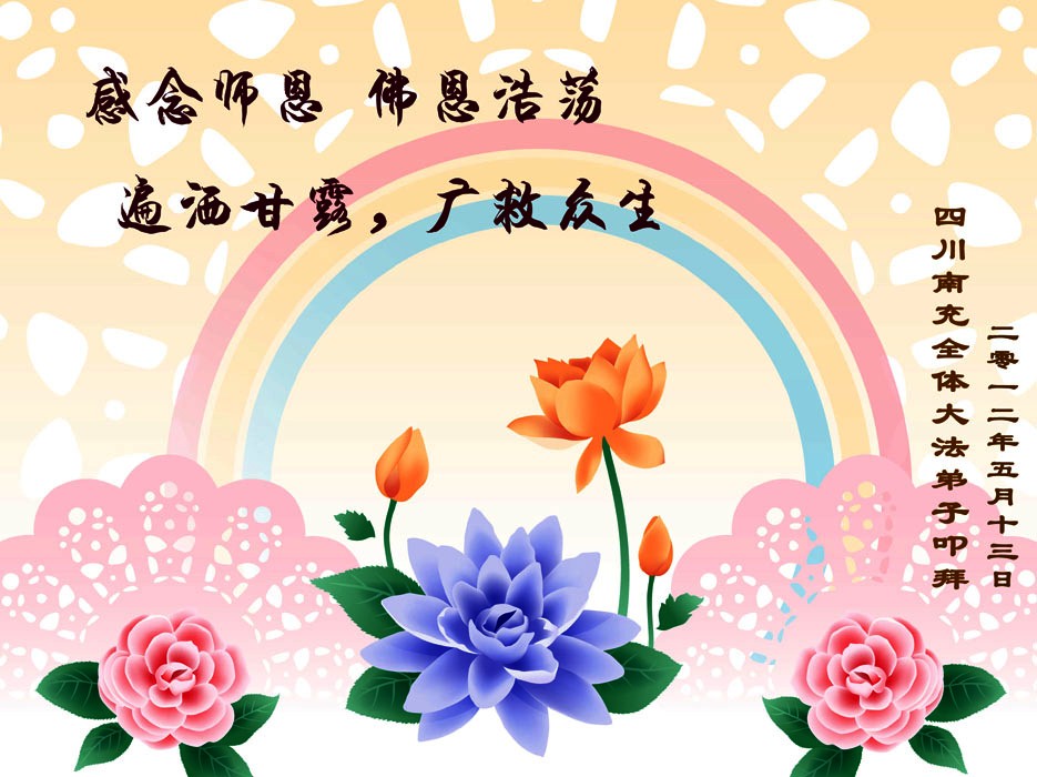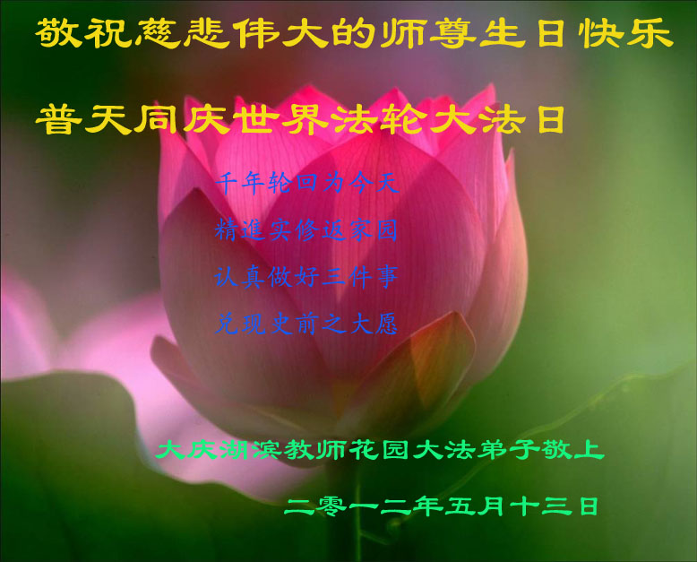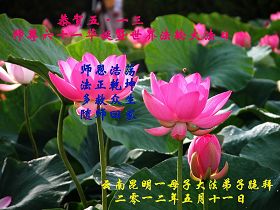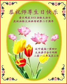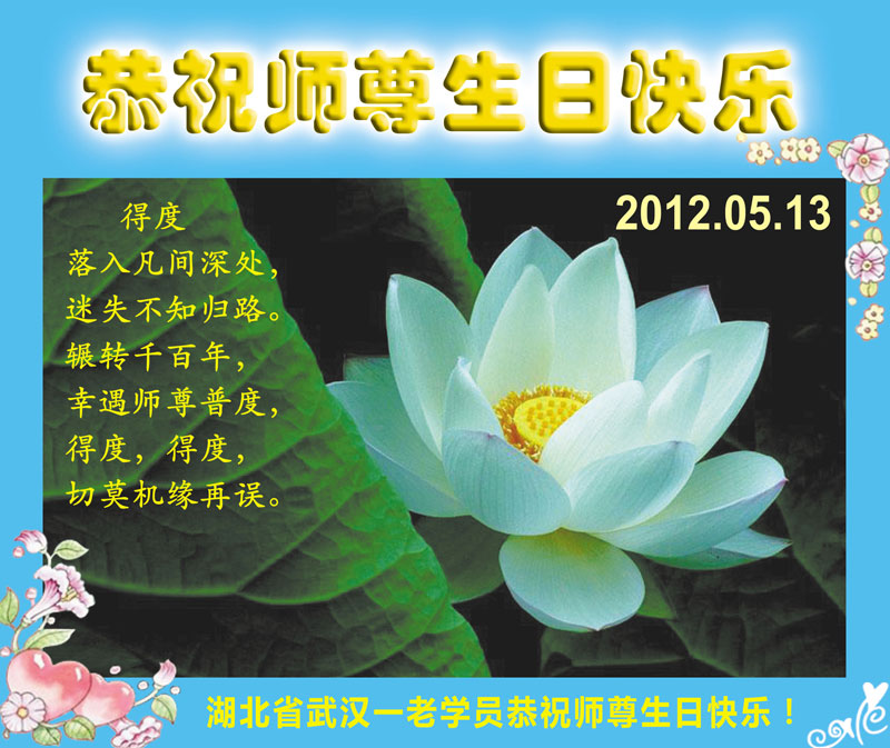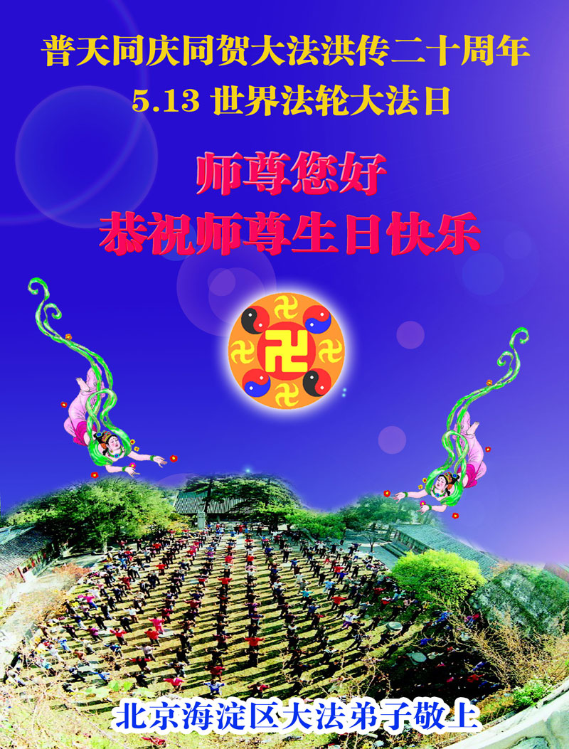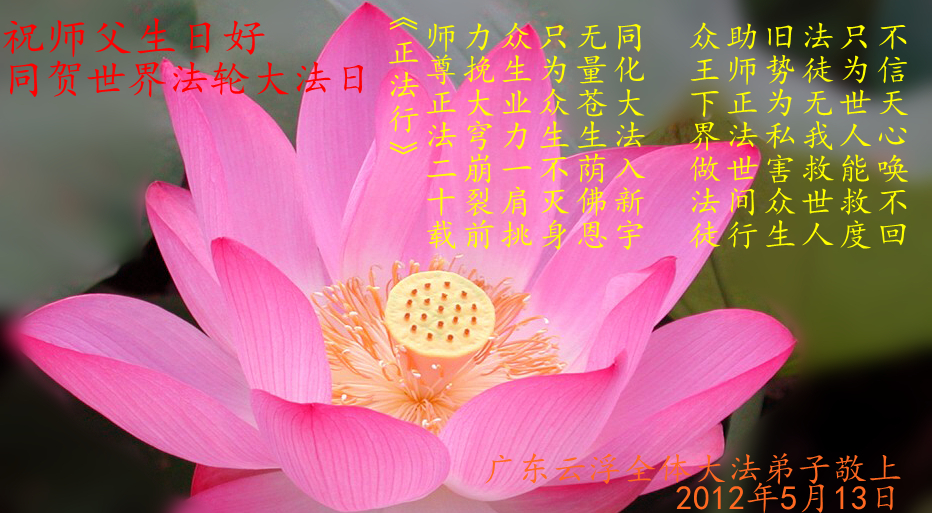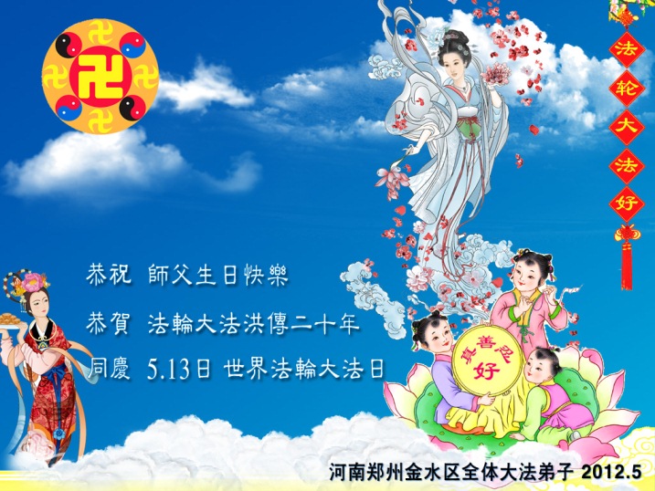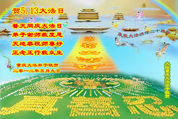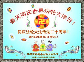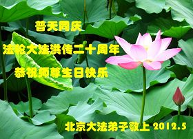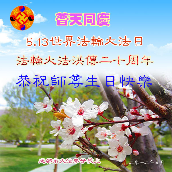 【明慧网二零一二年五月十四日】二十年前的五月十三日是历史见证神奇的开始。五千年的中华神传文化铺垫后,冥冥之中人们等待的、期盼和寻觅的人成神的通天之路开始在世人面前展开——一九九二年李洪志先生第一次公开将法轮修炼大法传给了世人。大法洪传世间二十载始终伴随着神迹,只有经历了净化、重生和被救度的生命才能真正感悟到法轮大法的殊胜和神圣。