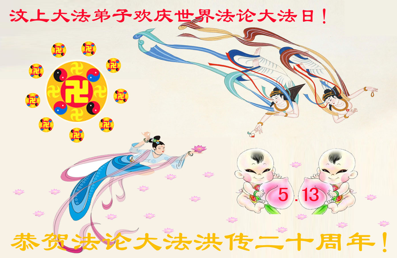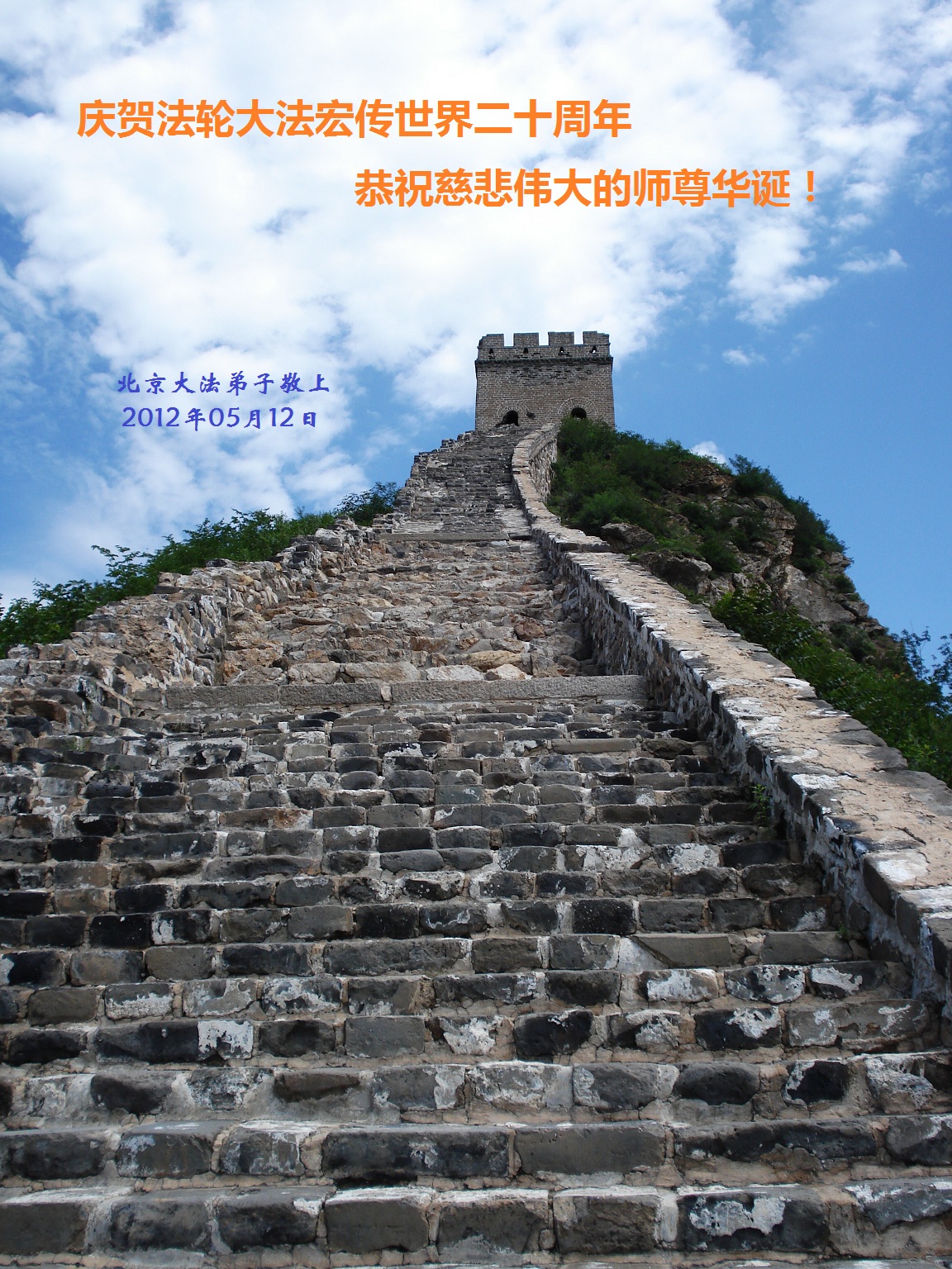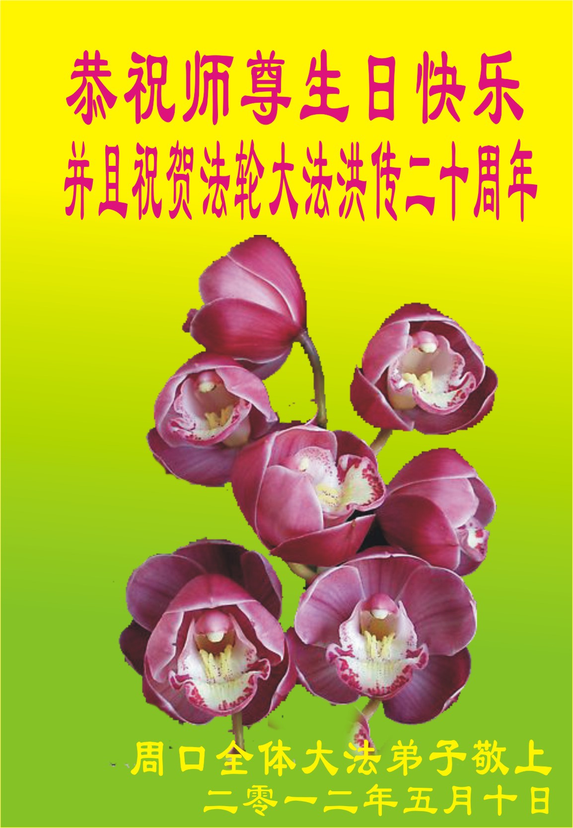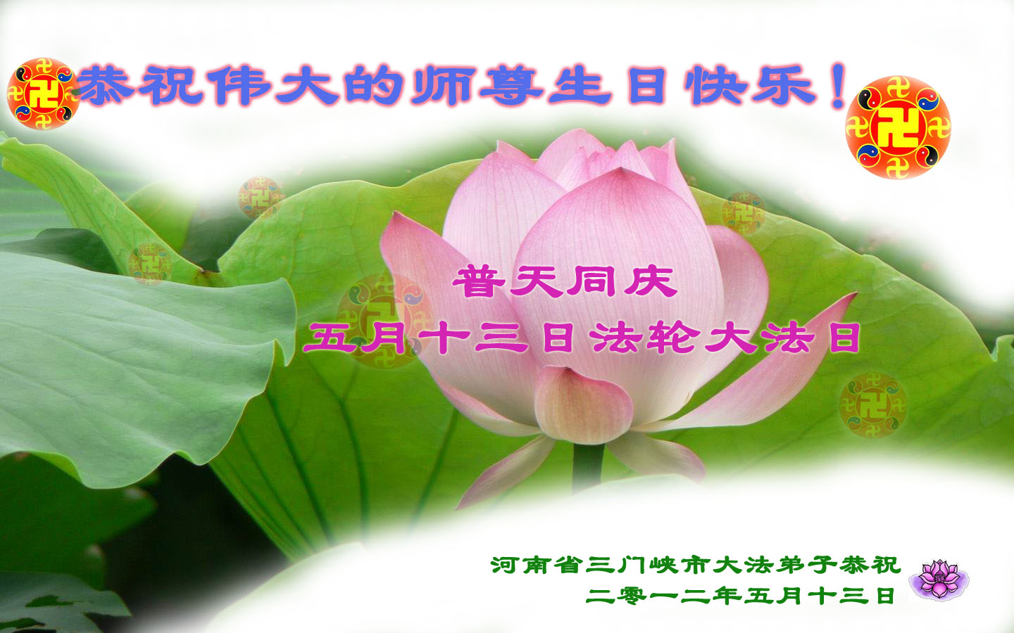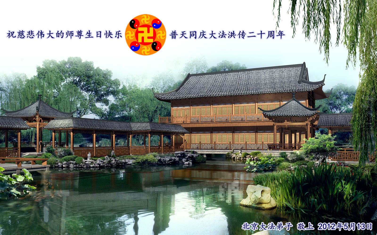 【明慧网二零一二年五月十四日】二十年前的五月十三日是历史见证神奇的开始。五千年的中华神传文化铺垫后,冥冥之中人们等待的、期盼和寻觅的人成神的通天之路开始在世人面前展开——一九九二年李洪志先生第一次公开将法轮修炼大法传给了世人。大法洪传世间二十载始终伴随着神迹,只有经历了净化、重生和被救度的生命才能真正感悟到法轮大法的殊胜和神圣。