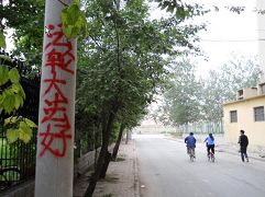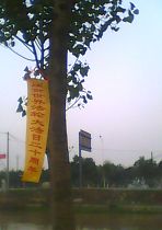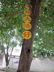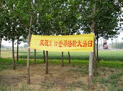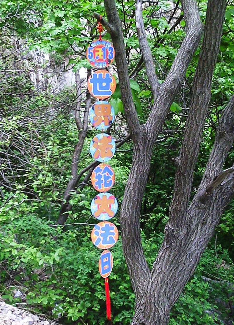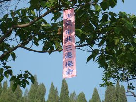 【明慧网二零一二年五月十五日】五月十三日是世界法轮大法日,今年的五月十三日标志着法轮大法洪传于世二十周年,大陆大法弟子以各种方式纪念这个神圣美好的日子,其中包括“挂条幅”。