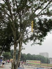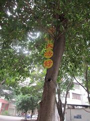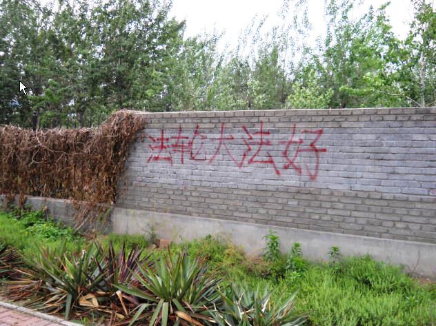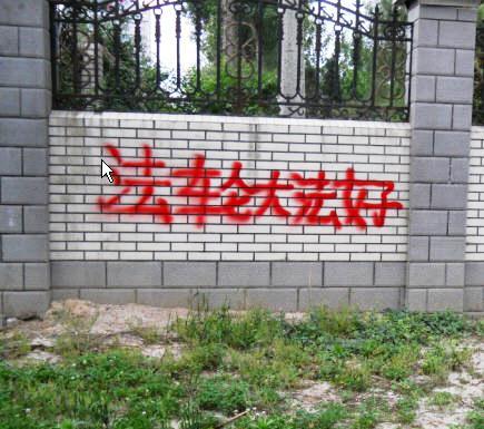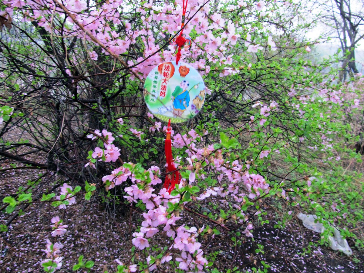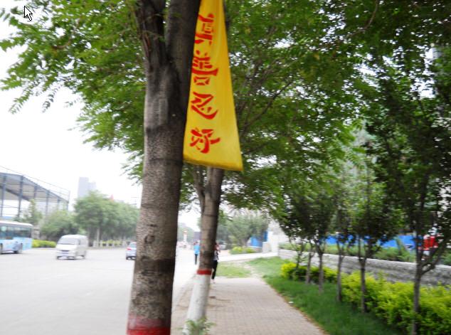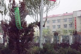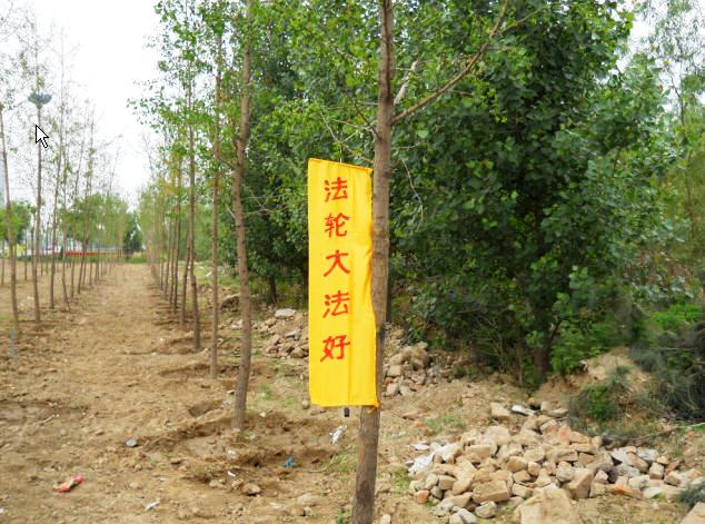 今年5月13清晨,东北某市的街道两侧树上、公园里、农村的公路两侧树上、桥栏杆上、村屯里,到处都飘扬着“法轮大法好”,“天灭中共、三退保命”,“恭祝五•一三世界法轮大法日”的真相条幅,还有“普天同庆五•一三世界法轮大法日”的横幅。建筑物上、墙上贴有“庆祝5•13法轮大法日”、“法办周永康”等真相图片,在乡村、在集市上缓缓飘过带有“法轮大法好”和“恭祝五•一三世界法轮大法日”真相条幅的氢气球。大法弟子感谢师尊救度之恩,以各种方式向世人,救度众生。