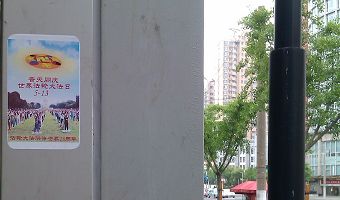 牡丹江市公园、路边和住宅小区内出现大量的真相条幅和不干胶贴。上面写着:“法轮大法好!”、“真善忍好!”、“法办周永康”。 等字样,向人们传递着真相。