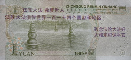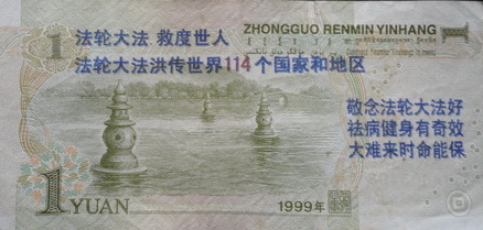 通讯员黑龙江报道)这是黑龙江某大城市流通的真相币,字迹清晰、醒目,内容多样,救度世人效果好,对邪恶起到了很大的震慑作用。