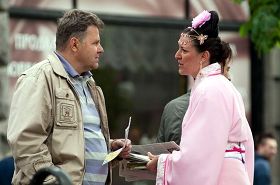 在首都基辅市,活动还未开始之前,早早的就有许多电视台的记者等待着采访报道。他们对学员们身着的唐装、汉服产生了极大的兴趣,一位法轮功学员在采访中说道,“法轮大法的洪传是普天同庆的好事,真诚的希望在中原大地上能够早日停止迫害法轮功,而中国大陆的法轮功学员们也可以公开的庆祝这个伟大的节日。”