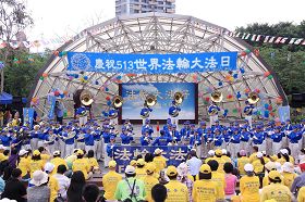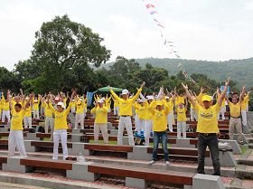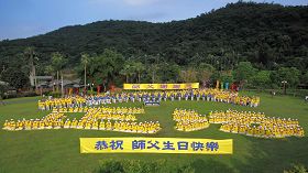 ![]() 台北法轮功学员以炼功、排字和艺文表演庆祝法轮大法日及师尊华诞 |