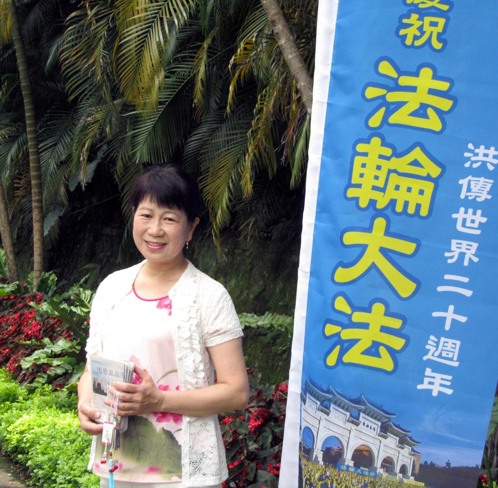 刘恩惠在十几年前罹患严重的妇女疾病,看遍中、西医各大医院,可总是第一次服药压下去,第二次吃药就无效,止痛药量越吃越多,身心受创巨大,剧烈的疼痛让她生不如死,内心常有“不晓得有没有明天”的恐惧,无论居家或上班都很不顺,这样的折磨痛苦了半年多。医石罔效之际,有人向恩惠推荐《转法轮》,并且建议她不要有任何杂念索求,用纯净的心思去看。恩惠花了四个月的时间细细捧读,发现身体的疼痛不再剧烈,而是麻麻的痛,她知道师父已经在管她、认她这个弟子了,于是找到“法轮功九天研习班”连上二次九天班,从那时开始修炼至今,上班及打理家务后,她一得空便到景点讲真相。