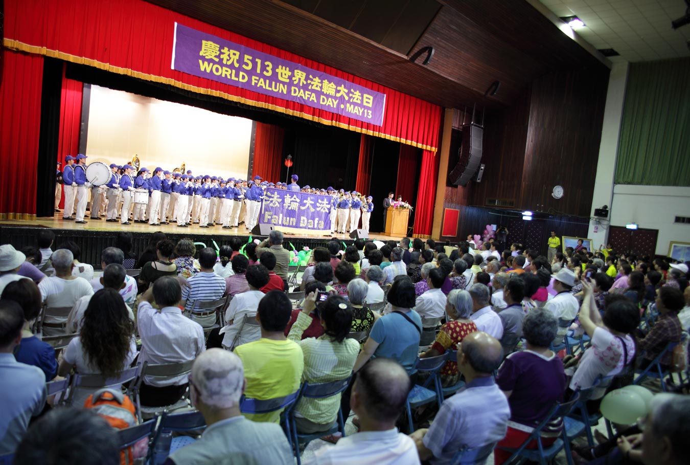 【明慧网二零一二年五月十六日】(明慧记者孙柏、苏容高雄采访报导)二零一二年五月十三日,是法轮大法弘传二十周年、第十三届世界法轮大法日,也是法轮功创始人李洪志先生六十一华诞。在这普天同庆的日子,台湾高雄法轮功学员满怀感恩与喜悦在高雄劳工教育生活中心举行盛大庆祝活动。许多政要与会祝贺,或专人送来祝贺花篮,场面隆重而热闹,一同见证分享“真、善、忍”洪传世界的喜悦。