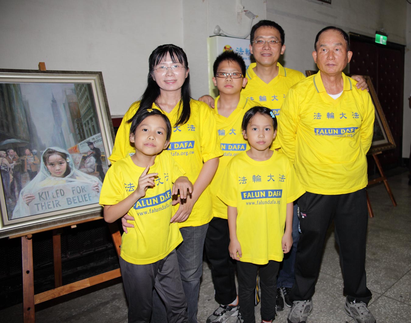 王富美说:“我们全家感恩,今年世界法轮大法日,也是李洪志师父生日暨庆祝法轮大法传世二十周年纪念,又恰逢母亲节,真是三喜临门,希望普天下为人子女者陪父母亲到高雄劳工育乐中心,庆祝并进一步了解法轮功真相,全家平安健康。”