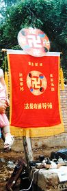 ![]() 一九九九年七二零之前石家庄某炼功点横幅 |