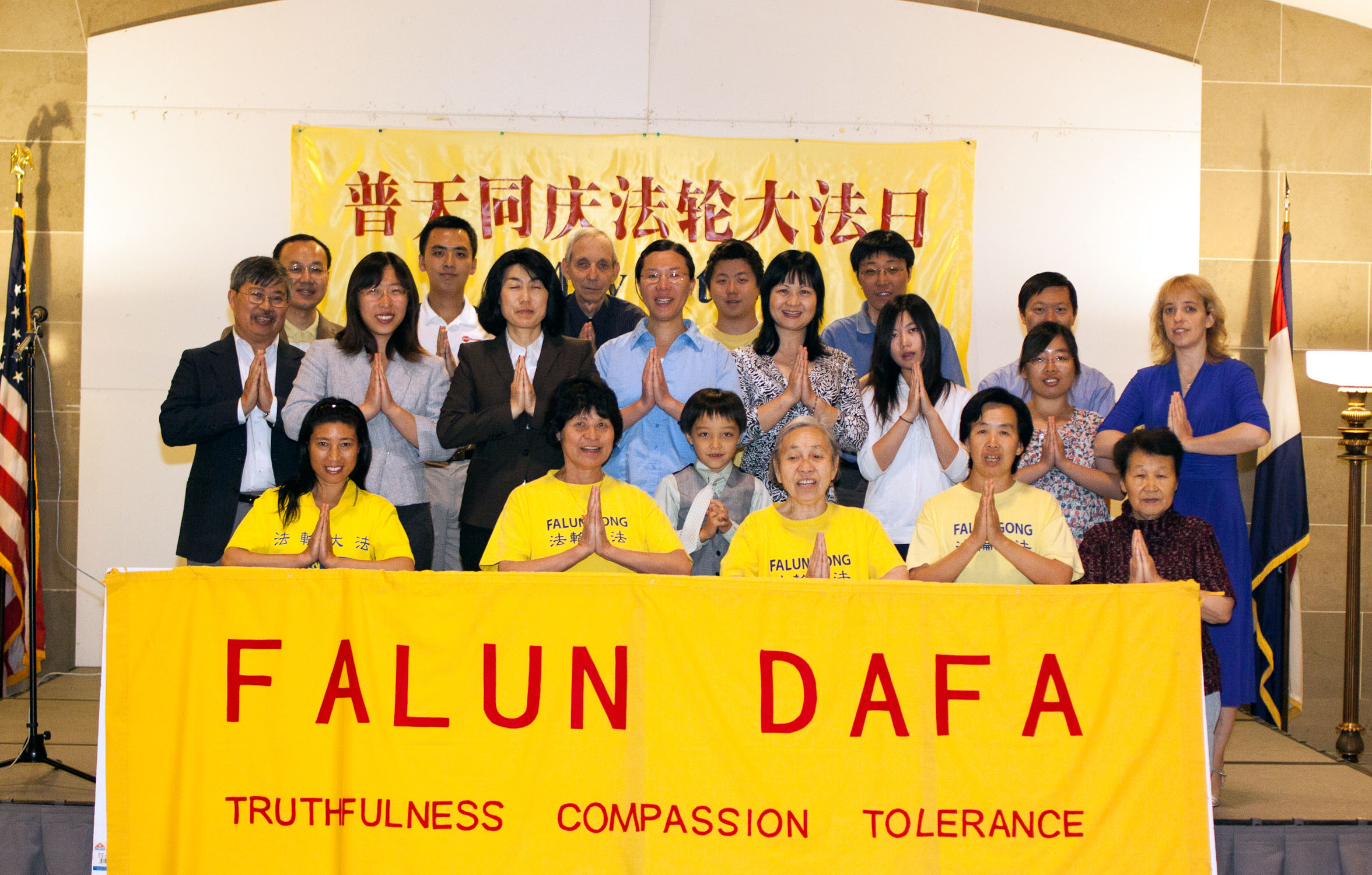 二零一二年五月十七日,为了庆祝法轮大法传世二十周年,美国密苏里州的法轮功学员在杰佛逊市的州政府大楼内举办了隆重的庆祝活动,希望能将“真善忍”的美好带给更多的民众。