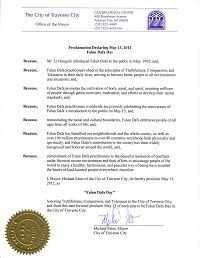 美国密西根州特拉弗斯市市长宣布法轮大法日