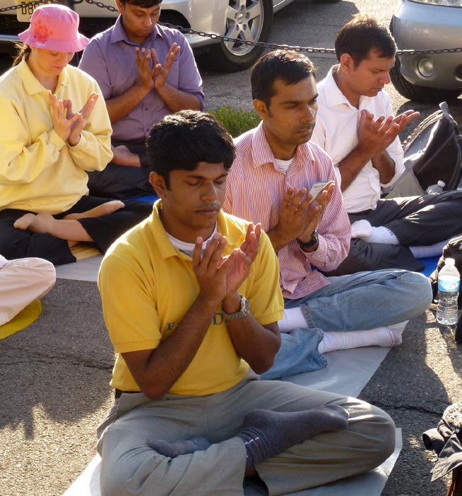 年轻的美国记者安德丽艾,来自挪威的特勒莎,来自印度的软件工程师霍和(Jose)、斯尼岚(Sriran)、阿布赫瑟克(Abhishek)和德威柏克(Dwiibak)荣幸地来参加法轮大法日庆祝活动,因为他们的共同感受是大家在一起力量无穷,心里充满了善和慈悲。他们的共同愿望只有一个:停止迫害法轮功,消除中共对法轮功的谎言,让世人能有美好的未来!
