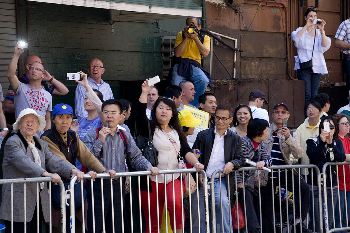 ![]() 观看曼哈顿七千学员游行的民众 |