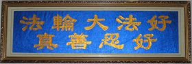二零一二年五月十三日是世界法轮大法日暨师尊传法二十周年的纪念日,在这普天同庆法轮大法洪传二十周年的日子里,我们想到在中国大陆还有很多被谎言蒙蔽的世人,所以我们用彩布做出了我们的真心话。