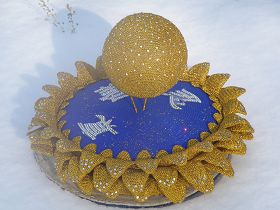 二、大盘,由蓝色绒线编织而成,象征大穹。