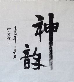 【明慧网二零一二年五月二十八日】妙宾是一位明真相并退出中共邪恶组织的常人书法爱好者,他看完神韵晚会光盘后,欣然写下”神韵”两个大字,并祝贺法轮大法洪传二十周年。