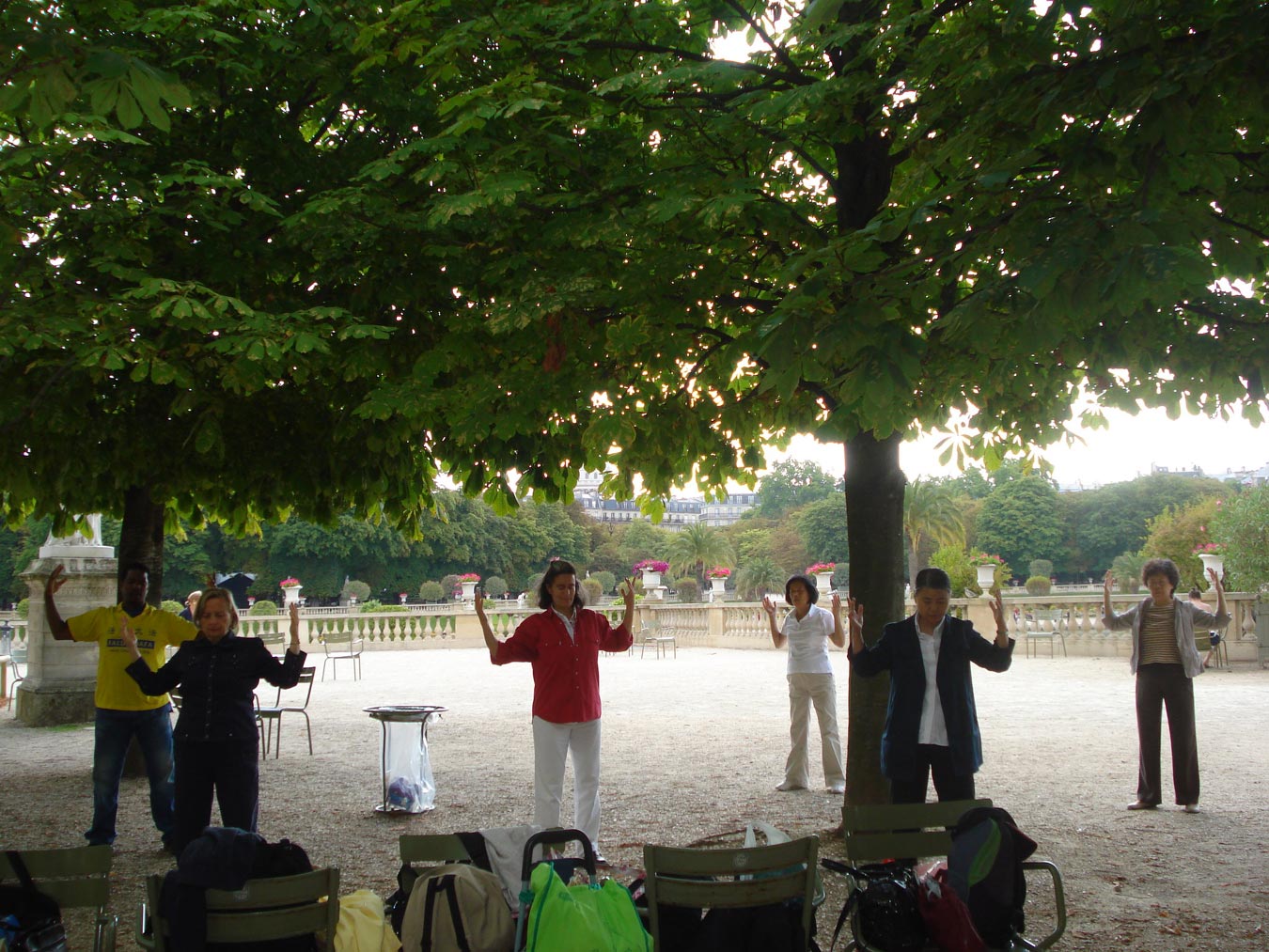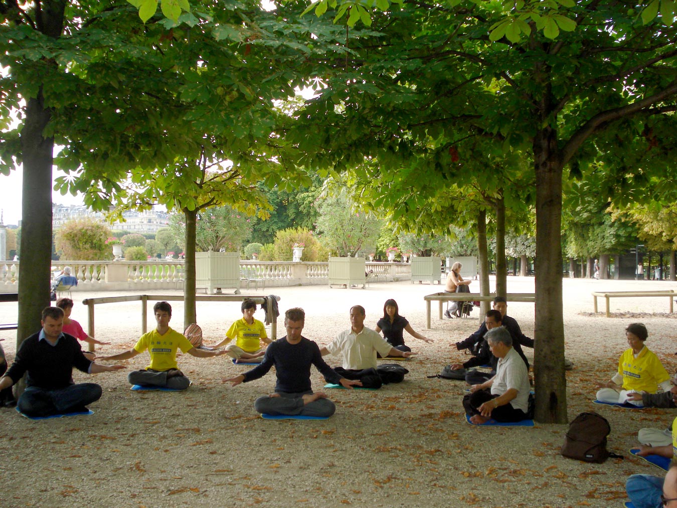 ![]() 在卢森堡公园炼功点炼功的法轮功学员 |