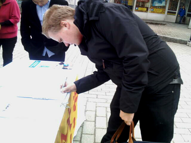 【明慧网二零一二年五月七日】二零一二年五月五日,芬兰法轮功学员来到刚那拉马揭(Kannelmäki)的社区展销会上设立真相点,告诉人们什么是法轮功,以及法轮功在中国遭受到中共的血腥迫害的真相。