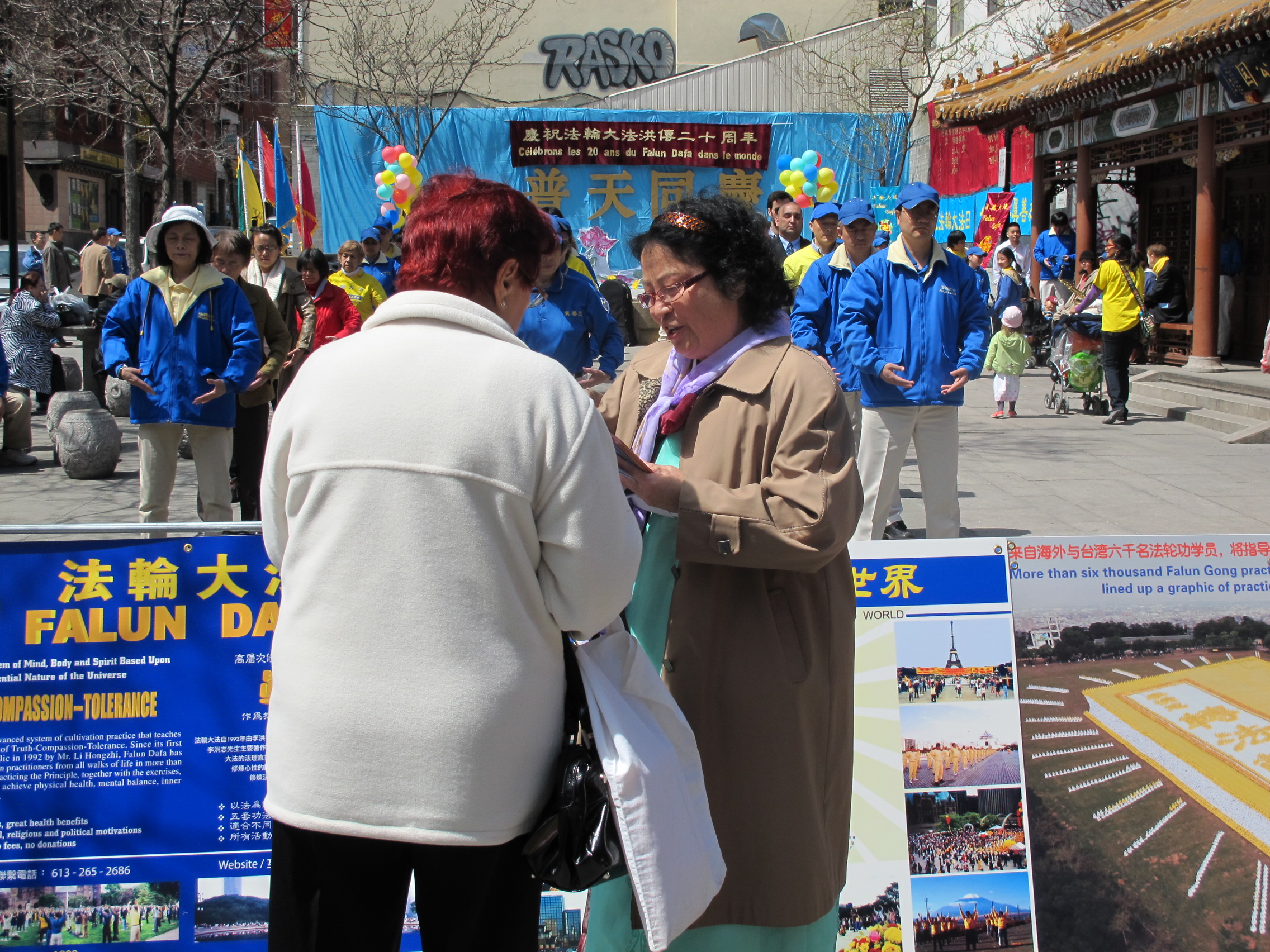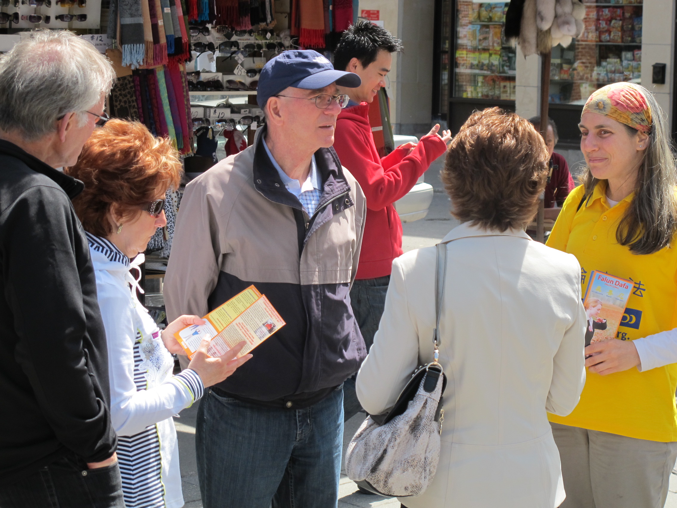 刚刚从山西来蒙特利尔探亲的老先生路过集会现场,他对记者说,在中国法轮功被迫害之前就认识一对老夫妇在街上炼功,他们介绍说法轮功非常好,他们老两口人也很好。听说一九九九年以后被关押起来了,再没见过他们。老先生不相信中共宣传的,他说:“(中共媒体)宣传不一定是真的。”