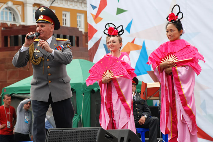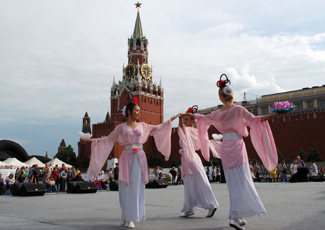 法轮功学员组成的腰鼓队及舞狮不断地围绕红场游行了四个小时,精神抖擞,击鼓震天。大法弟子们献出了舞蹈《法轮大法好》,《净莲》,歌曲《给人类的一封信》等文艺节目。现场的学员还进行法轮大法五套功法的演示。另外,一旁设有十五张桌子来摺纸莲花。由于索要者众,许多人根本无法接近折莲花的桌子。