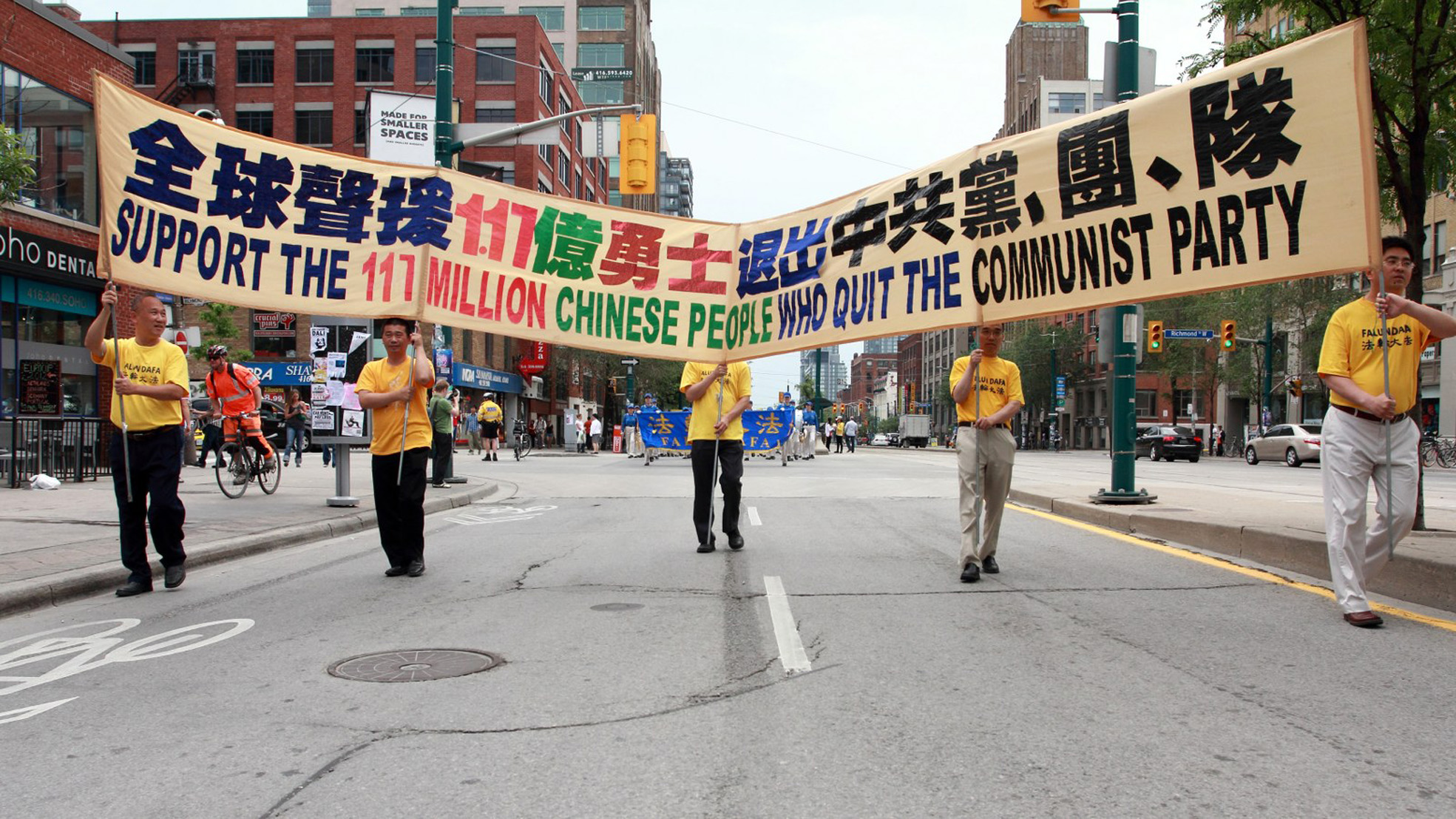 ![]() 各界人士在多伦多市中心游行,声援超过一亿一千七百万中国民众退出中共相关组织 |