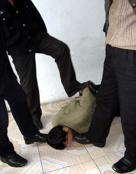 ![]() 演示图:警察用脚猛踩、踏头部 | ![]() 演示图:警察用脚浑身乱踢 |